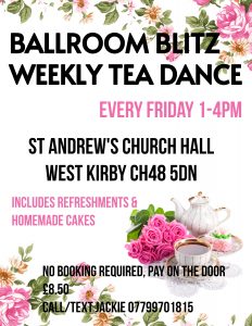ST ANDREW’S CHURCH HALL, WEST KIRBY – TEA DANCE EVERY FRIDAY AFTERNOON 1-4PM