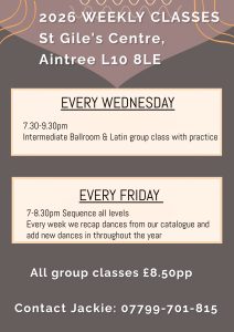 ST GILES AINTREE, LIVERPOOL, WEDNESDAYS (Variations of Ballroom & Latin) FRIDAYS – Sequence dancing